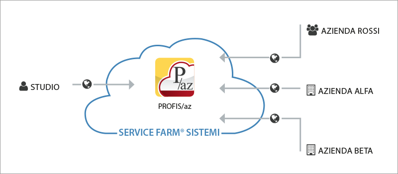 Con PROFIS/az l’Azienda dispone di un sistema gestionale per fare le fatture in cloud; grazie alla contabilità in cloud può avere sempre a disposizione e in qualunque luogo i suoi dati. E può completare la soluzione con la gestione finanziaria e la gestione degli ordini e del magazzino, se vuole. Su quei dati, il Commercialista fornisce consulenza gestionale e servizi fiscali, il tutto completamente integrato con la soluzione PROFIS installata presso lo studio.
